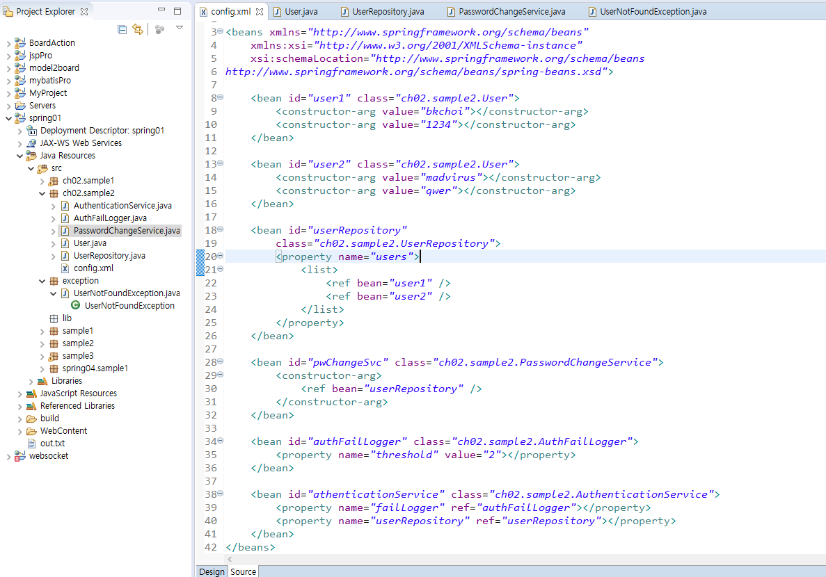 참조형 변수를 통해 다른 bean의 내용을 참조해온다.
