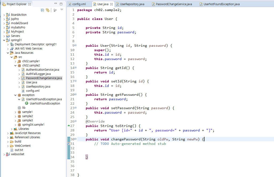 순서로 따지면 main부터 시작이나 xml wiring의 파악을 위해 클래스들부터 작성