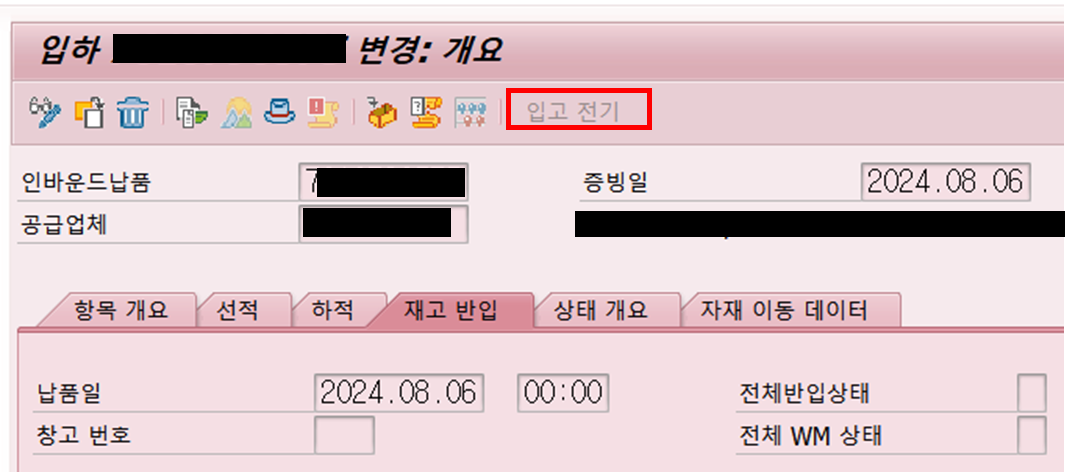 출고는 되고 입고처리가 안된다하여 내용파악을 하던 도중 해결한 방법을 기록해 놓으면 좋을 것 같다 생각이 들었다.