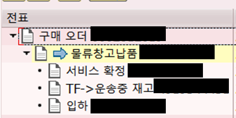 현재 문제가 된 문서는 TF→운송중재고 까지만 처리가되어있고