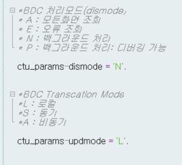 ctu_params를 통하여 BDC 프로그램의 처리방식이 어떻게 될지 정의하며,