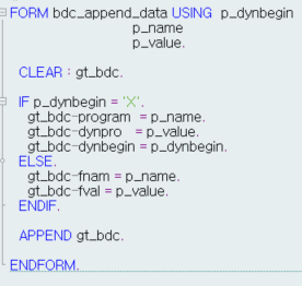 PERFORM bdc_append_data USING : 'X' 'SAPLSPO1' '0100',