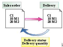 관련된 데이터가 Sales order로부터 Delivery로 Copy되며, Delivery note에서 수작업으로 내용을 수정할 수 있다.