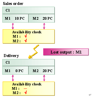 Sales order 단계에서 이미 availability check가 수행되었지만, 여러가지 이유에 의해 실제 출고시점에 해당 제품이 가용하지 않는 경우가 발생할 수 있다.