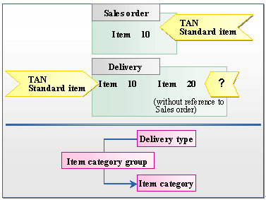 아래 그림은 delivery item category가 결정되는 방법을 설명하고 있다.