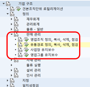 기업구조의 하위트리에서 SD와 관련된 세팅은 판매관리 아래에 있다.