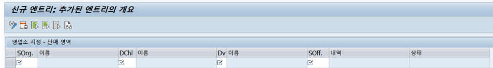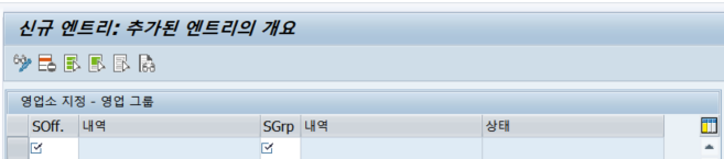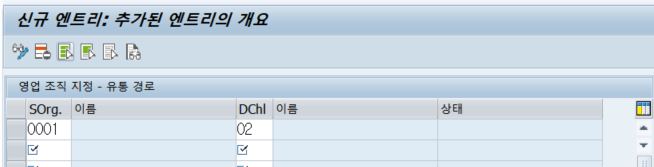 하나의 영업조직에 예로 유통경로가 국내, 해외가 있을 경우 유통경로별로 신규엔트리를 눌러 추가하면 된다.