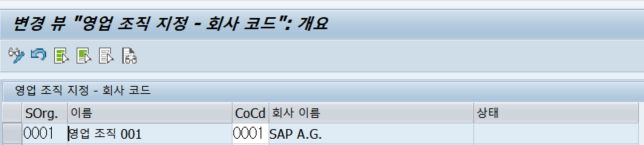 정의에서 세팅한 영업조직을 회사코드에 매핑하는 것이다.