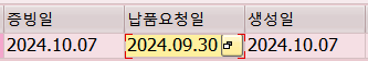 상단의 이미지는 2024.10.07에 입력한 판매문서의 정보입니다.