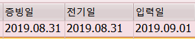 실제 비용을 다루는 회계문서에서는 전기일과 동일하게 되어 있는 부분을 확인할 수 있습니다.