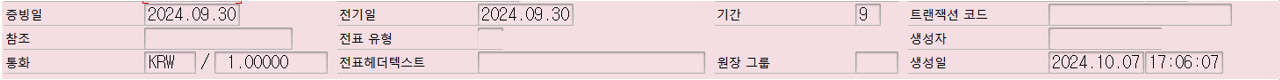 상단의 이미지는 2024.10.07에 입력한 회계문서의 정보입니다.