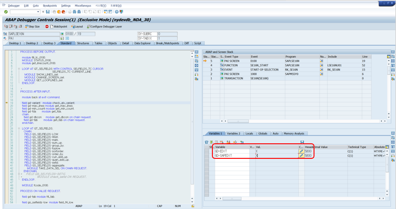 - GD-EDIT, GD-SAPEDIT 필드 입력 후 ' X ' 값 넣어 주기 그 후 실행 (F8)