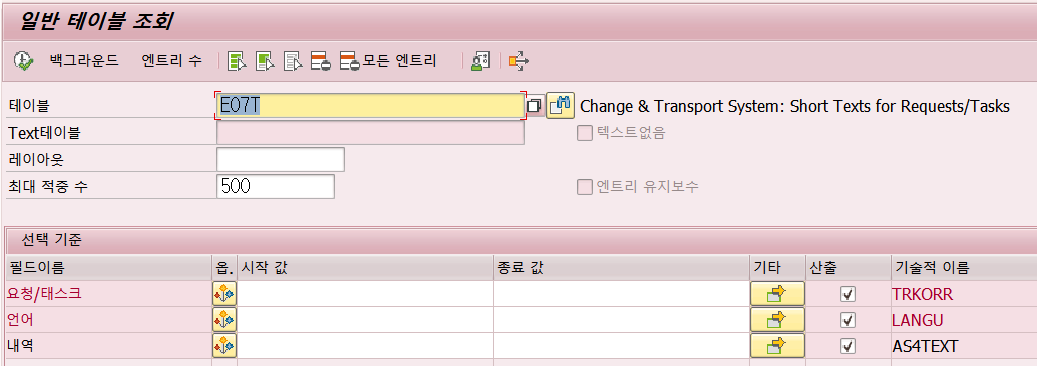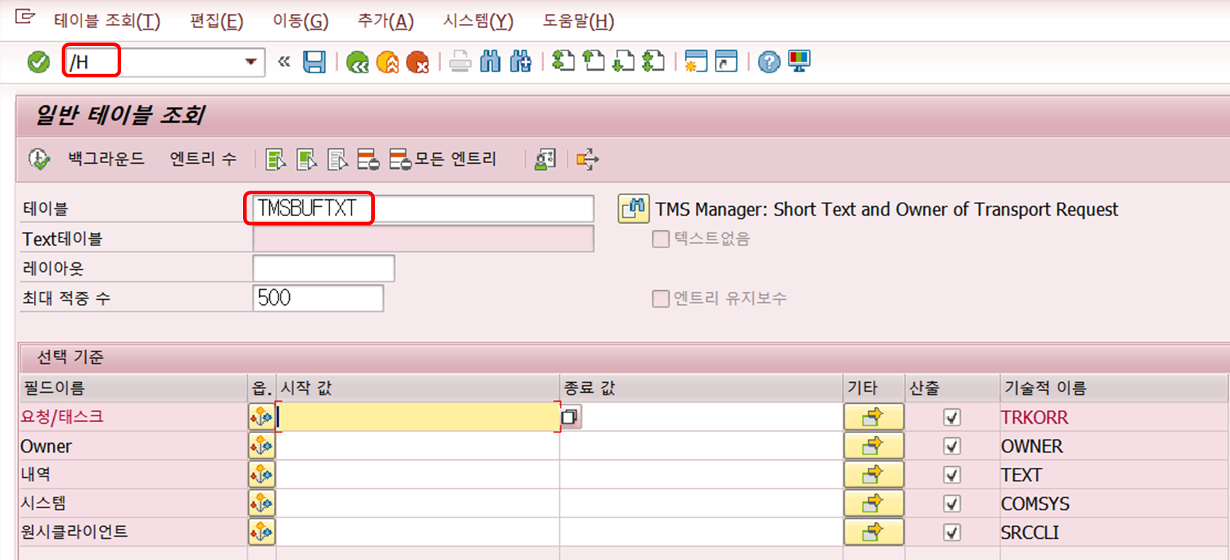 3. 변경하고자하는 태스크번호를 입력한다. (STMS에서 확인)
