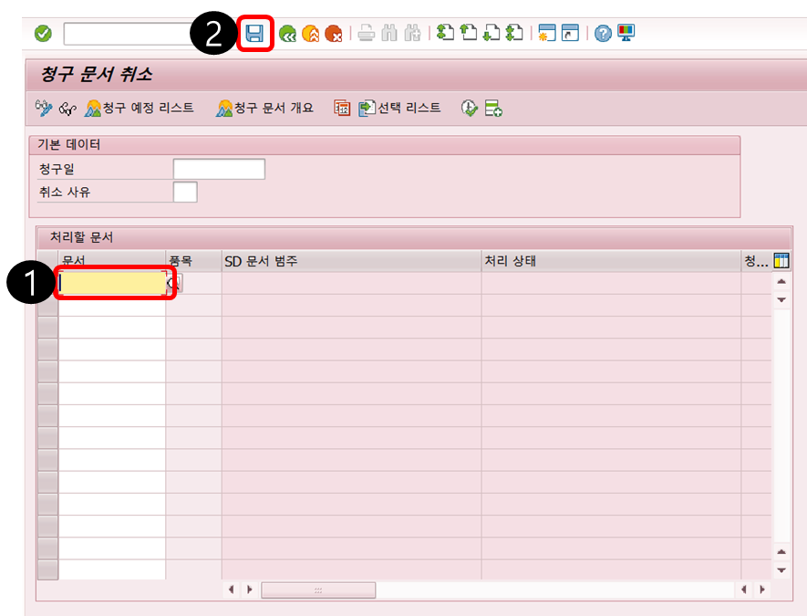 문제 없이 인식 되었다면 2번 저장을 누르면 대금청구문서가 취소된다.