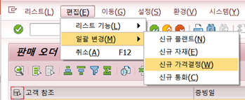 가격결정절차 변경 외에도 판매처, 통화 등 다양한 상황에 맞게 변경을 일괄로 할 수 있으니 참고하면 도움이 됩니다.